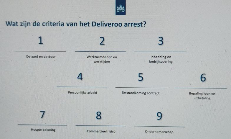 Een belangrijke leidraad hierbij is het Deliveroo-arrest, een uitspraak van de Hoge Raad die helpt te beoordelen of iemand als zelfstandige of als werknemer werkt. In dit arrest zijn negen criteria vastgesteld waarmee de feitelijke aard van de arbeidsrelatie kan worden beoordeeld.